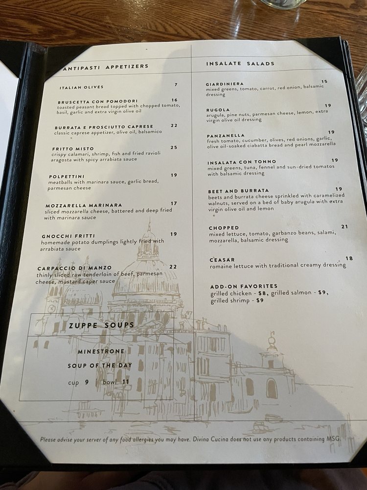 At Divina Cucina, we not only embrace traditional recipes but also cater to modern dining preferences, offering outdoor seating, delivery, and takeout options. The atmosphere is classy yet casual, making it perfect for groups, families, or a cozy dinner for two. Friendly, ASL-proficient staff ensure a welcoming experience for everyone.